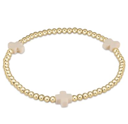 E Newton Signature Cross Gold Pattern 3mm Bead Bracelet