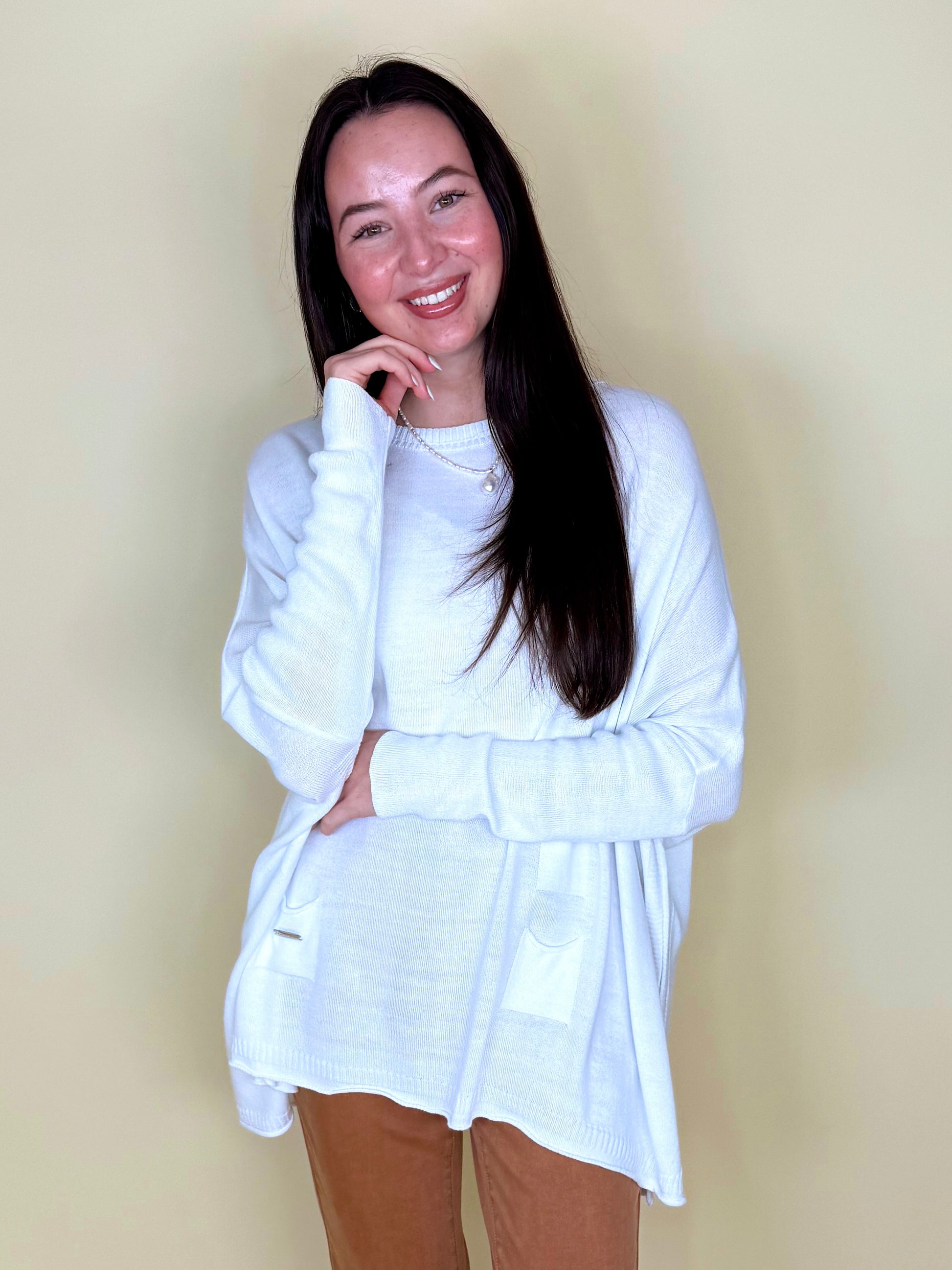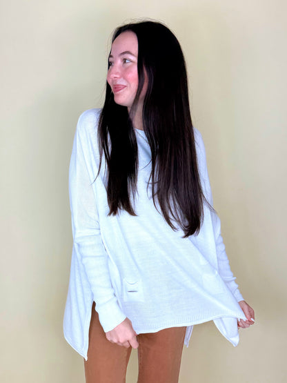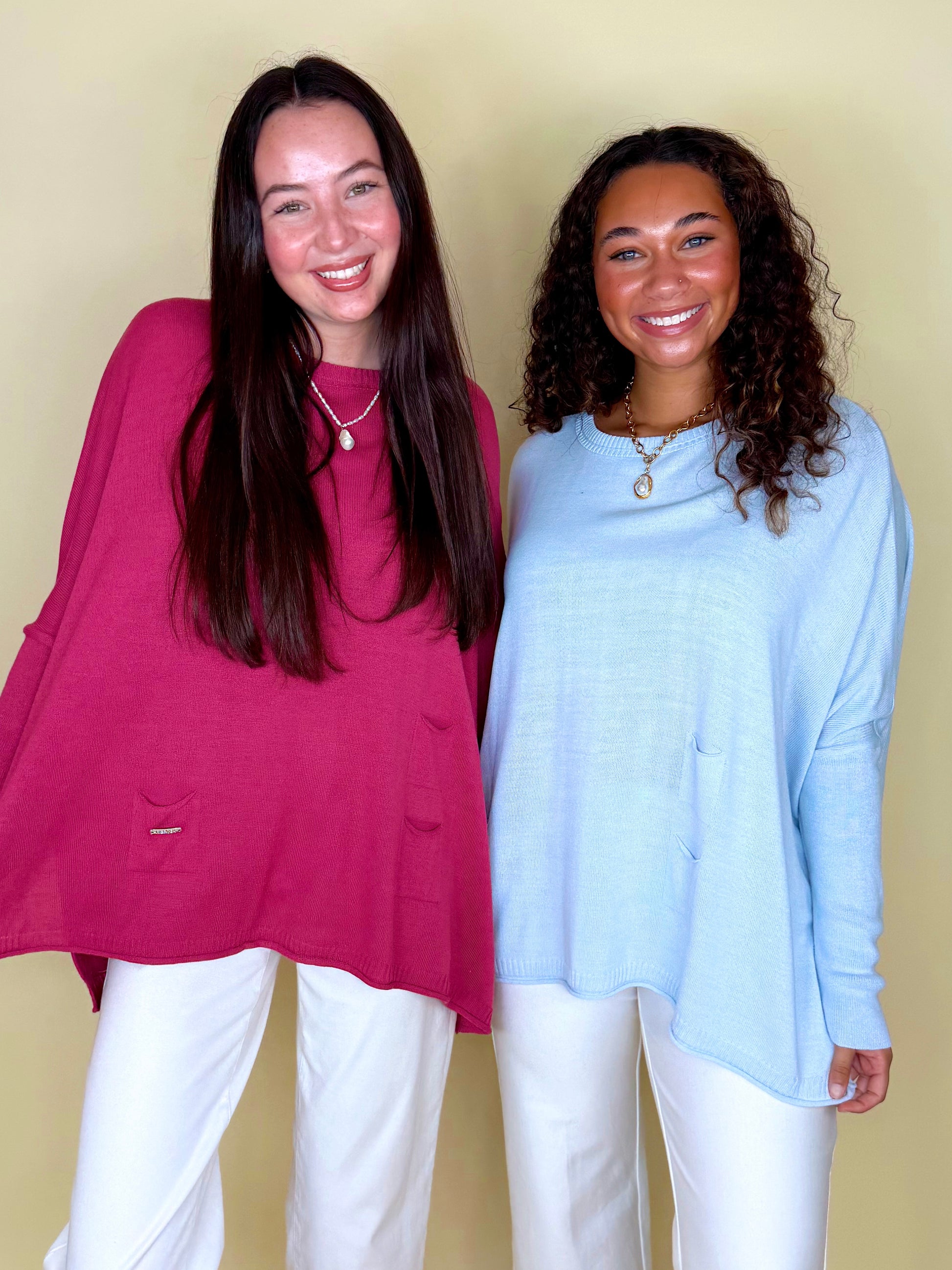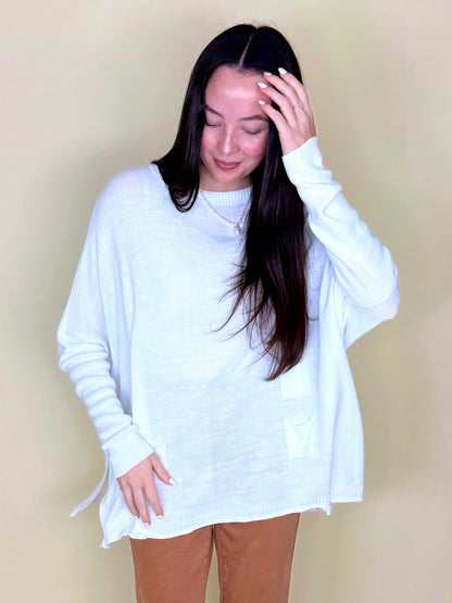 The MVP of our chic sweaters—this is the home run, slam-dunk and touchdown of every sweater in your closet. Our go-to crewneck sweater, the Catalina is one to wear in a pinch, on the move or at your leisure. Comfortable, versatile, understated and effortlessly chic, it’s truly a year-round hero to be worn on its own or layered. With our signature split-sides, its billowy fit is anchored by a perfectly situated crewneck and delicately contoured shoulders, giving you all the freedom you need while maintaining a sharp, always put-together appearance. Three discrete pockets are fashionably sized for a key, credit card and/or lipstick (as the situation dictates). Made in Ecuador, the Catalina is one of our first designs and a MERSEA staple.