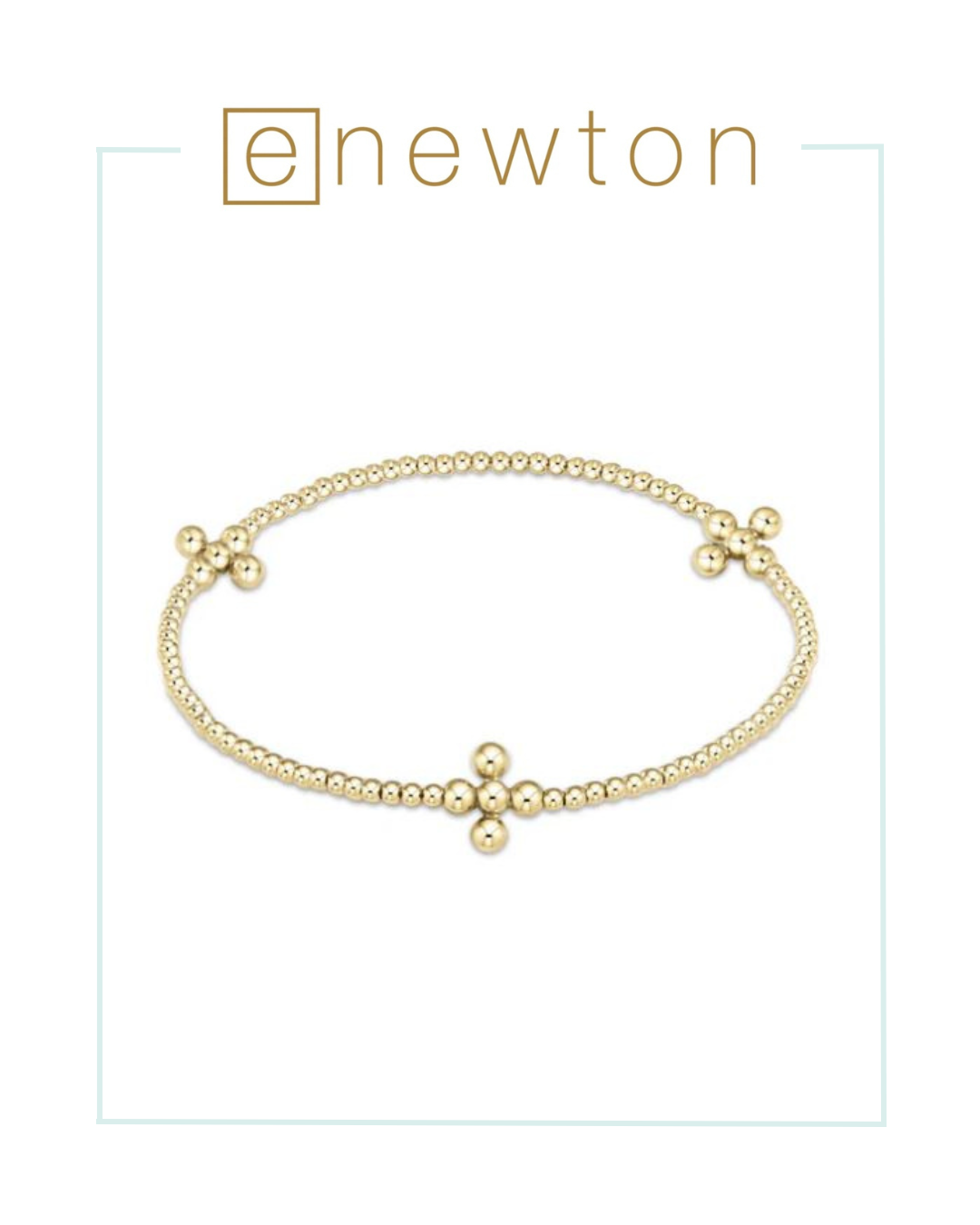 E Newton Signature Cross Gold Pattern 2mm Bead Bracelet - Classic Beaded Signature Cross Gold - 3mm Bead Gold