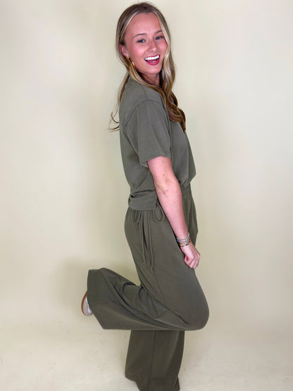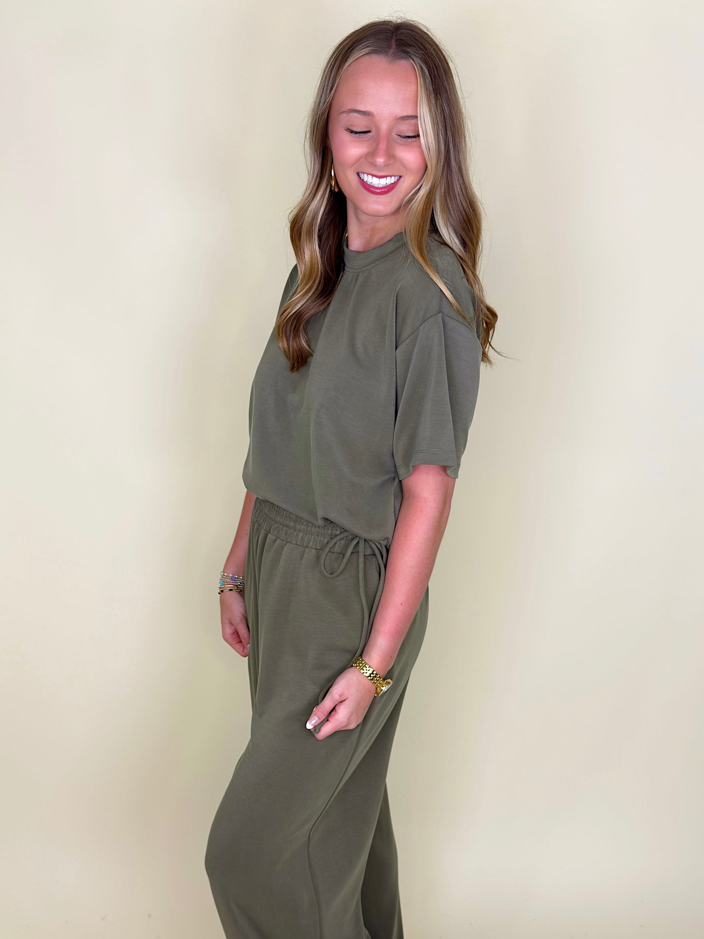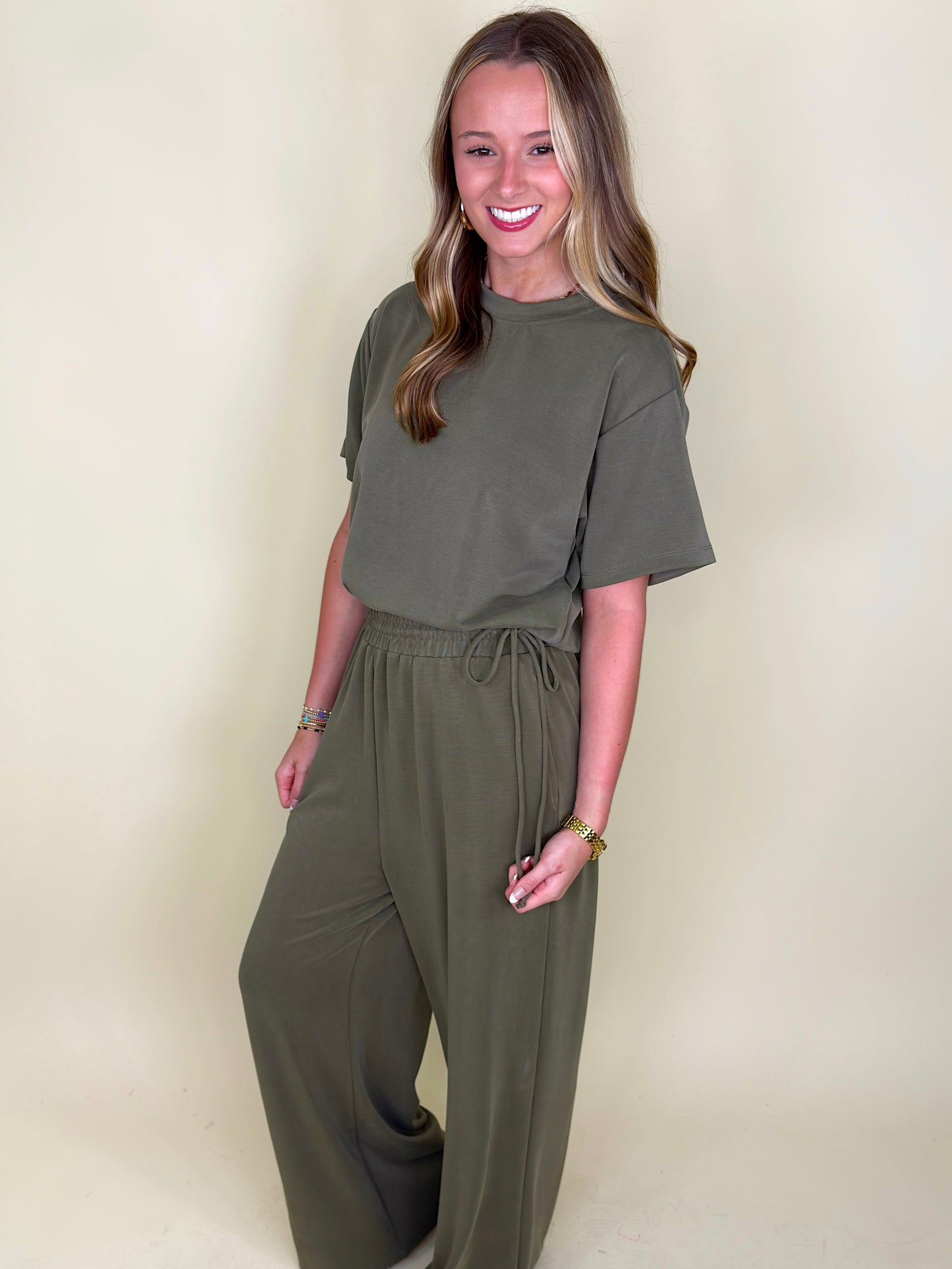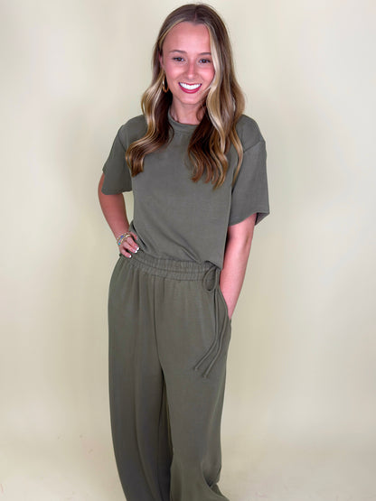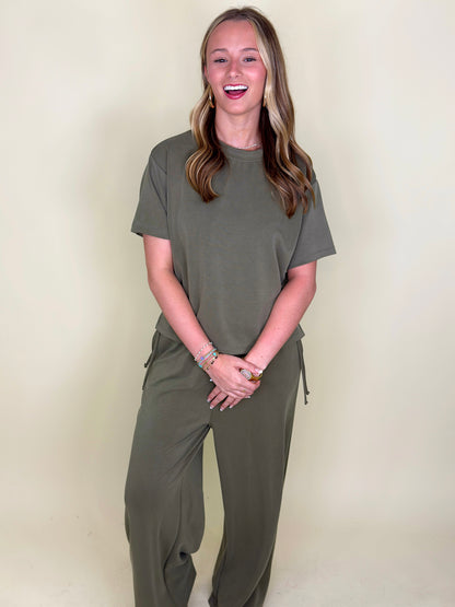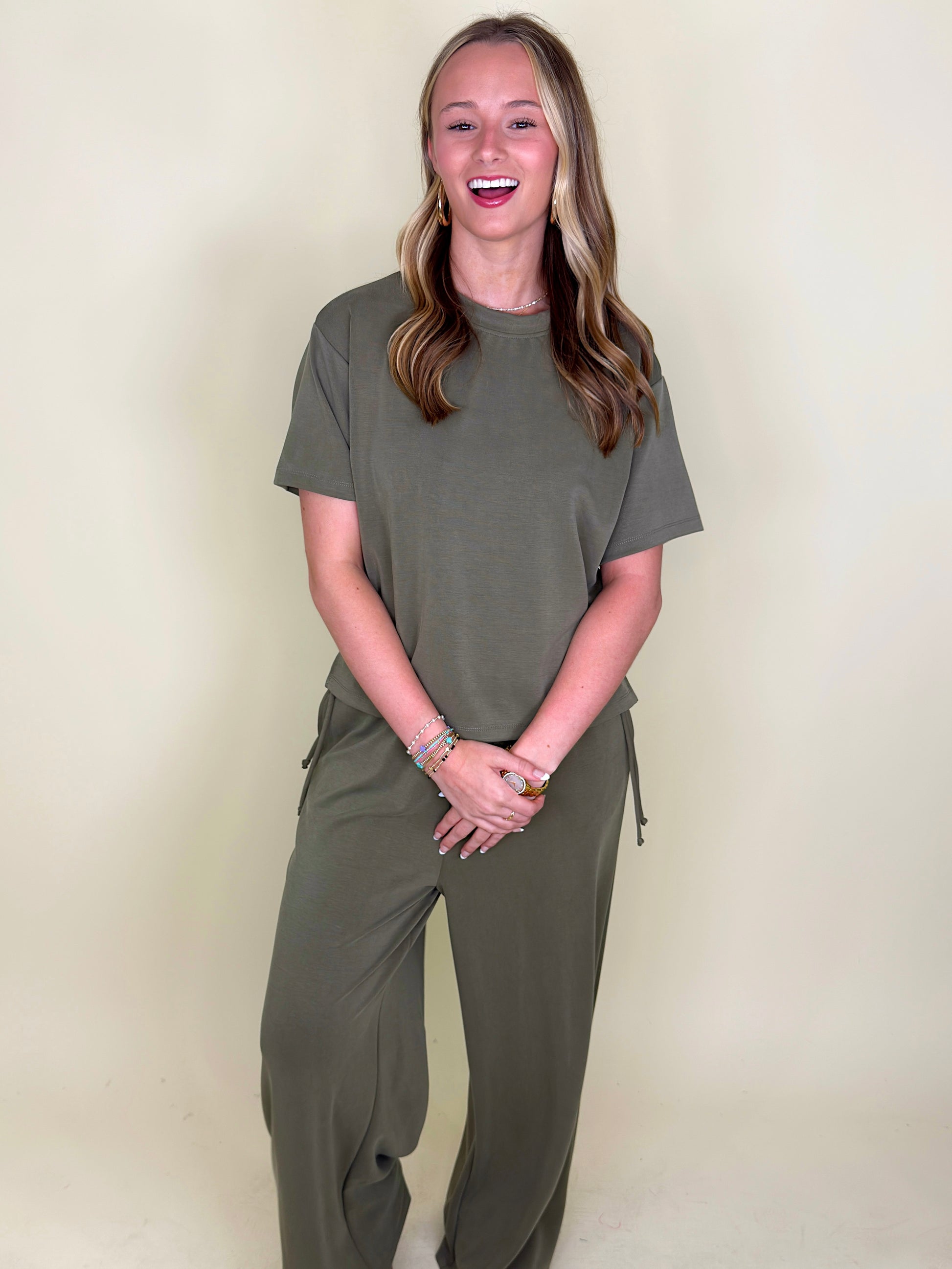 Short Sleeve Crewneck Top and Wide Leg Pant Set